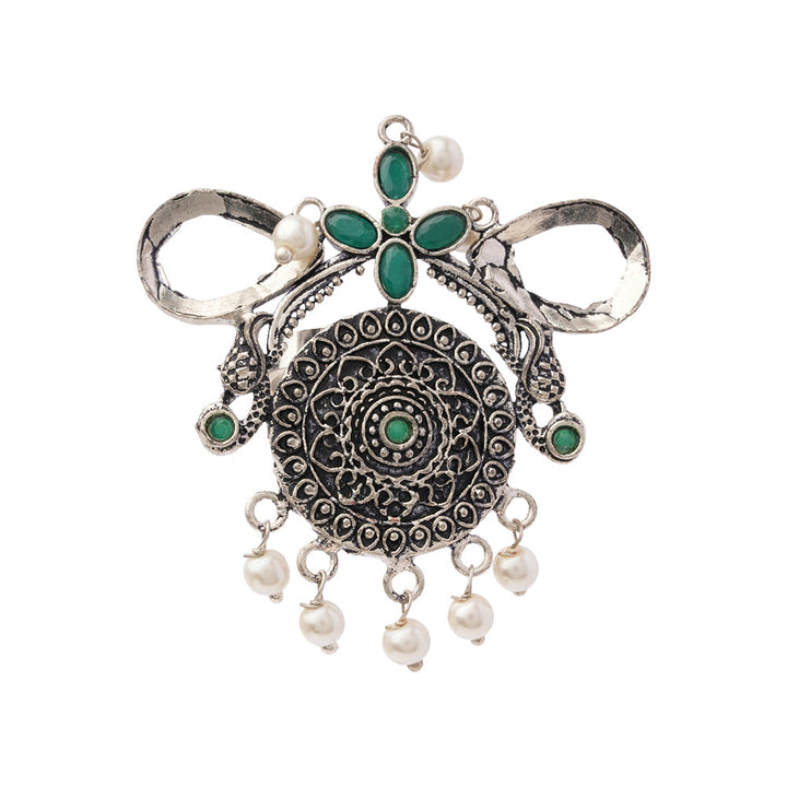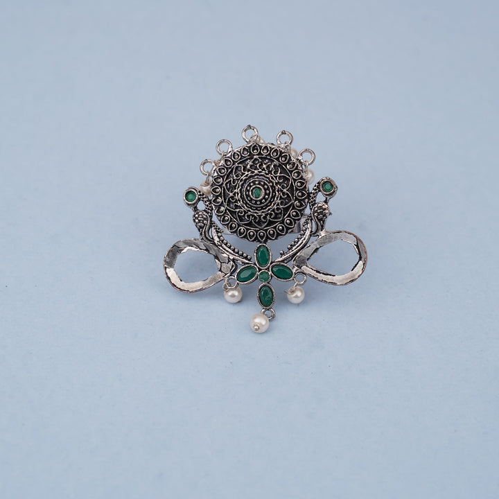 This oxidised ring combines intricate detailing with a vintage-inspired design, offering a timeless piece that exudes elegance and sophistication. Perfect for complementing both casual and formal attire, it adds a touch of antique charm to any ensemble, making it a versatile addition to your jewelry collection.