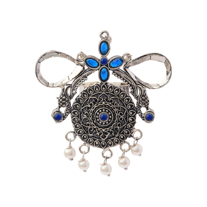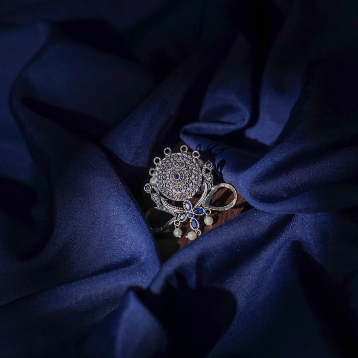 This oxidised ring combines intricate detailing with a vintage-inspired design, offering a timeless piece that exudes elegance and sophistication. Perfect for complementing both casual and formal attire, it adds a touch of antique charm to any ensemble, making it a versatile addition to your jewelry collection.
