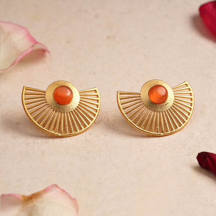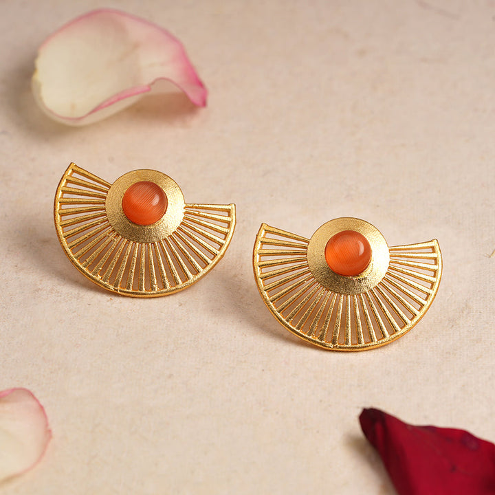 Elevate your elegance with the Namya Stone Studded Golden Stud Earrings in Light Orange . Crafted to enhance any outfit, these earrings feature finely set stones that capture light beautifully. Their golden finish offers a timeless appeal, making them a refined choice for both daily wear and special occasions. Lightweight and durable, they promise comfort alongside style. Perfect for those who appreciate understated luxury with a vibrant touch.