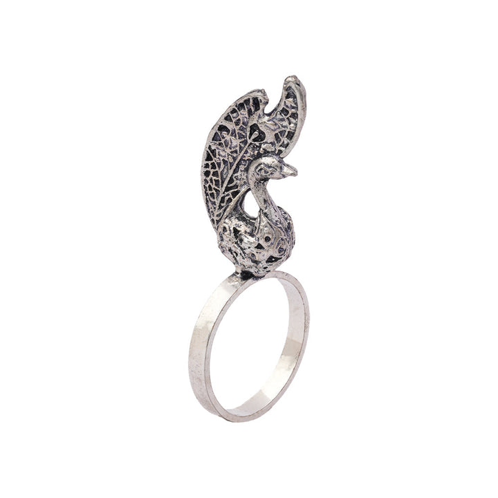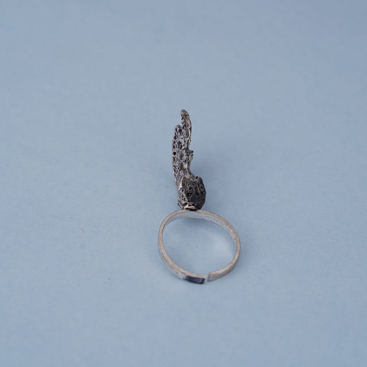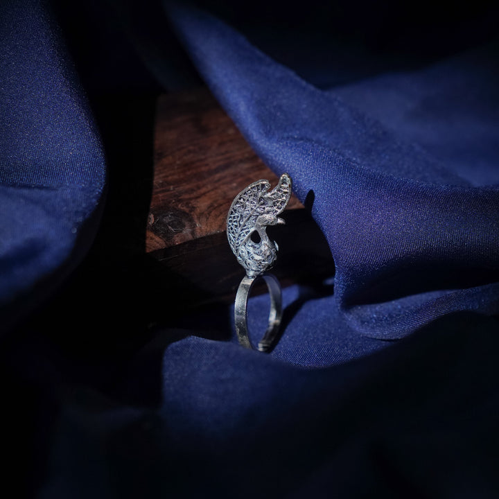 An elegant peacock ring with intricate craftsmanship, symbolizing beauty and cultural richness, ideal for special occasions.