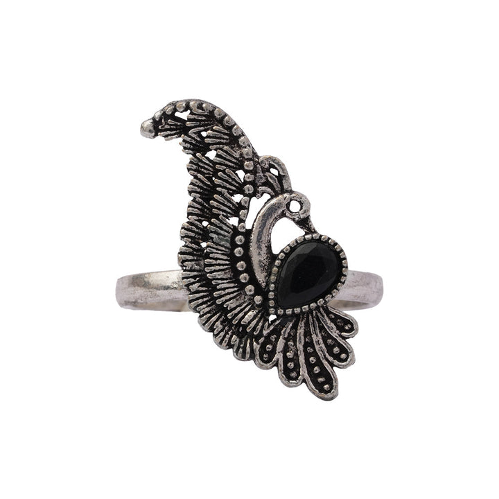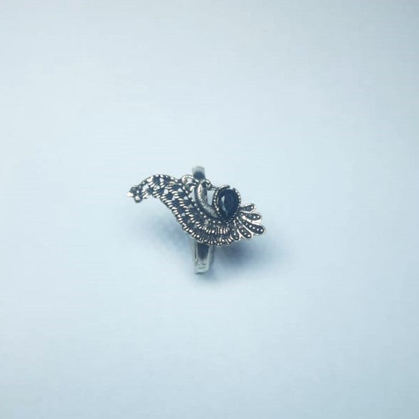 Unique peacock-shaped oxidised ring blending elegance and cultural symbolism, making it a standout piece in any collection.