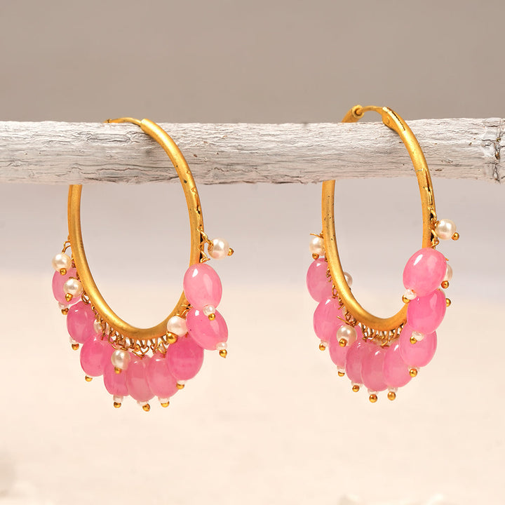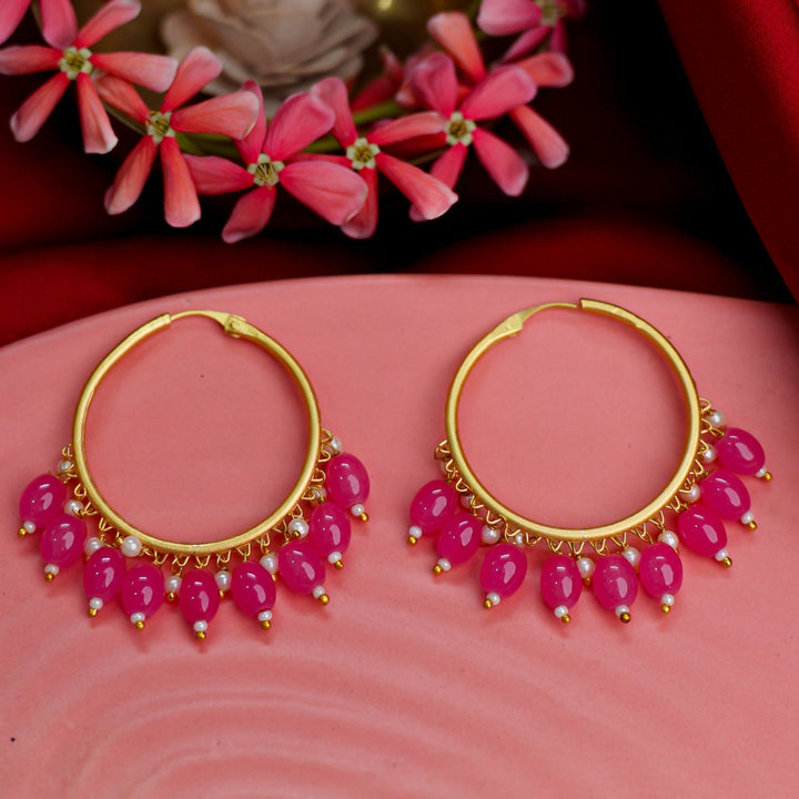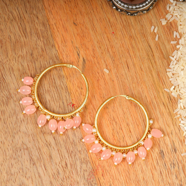 This Pink Matt Finished Golden Bali is crafted with a matte finish and delicate gold pattern. Its unique design and subtle colouring create a luxurious look perfect for any occasion.