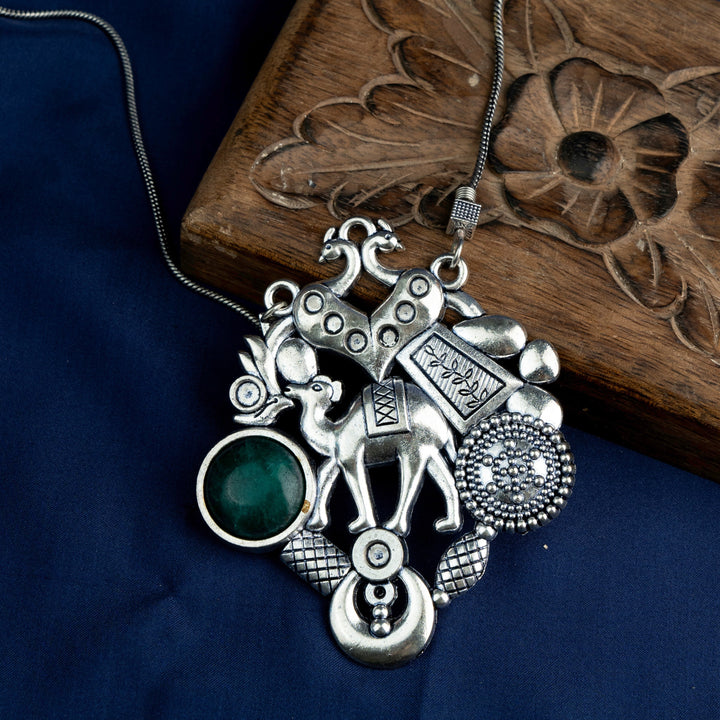 Discover the charm of Rajasthan with our oxidised neckpiece. Featuring traditional motifs and a rustic finish, it's perfect for cultural enthusiasts and heritage admirers.