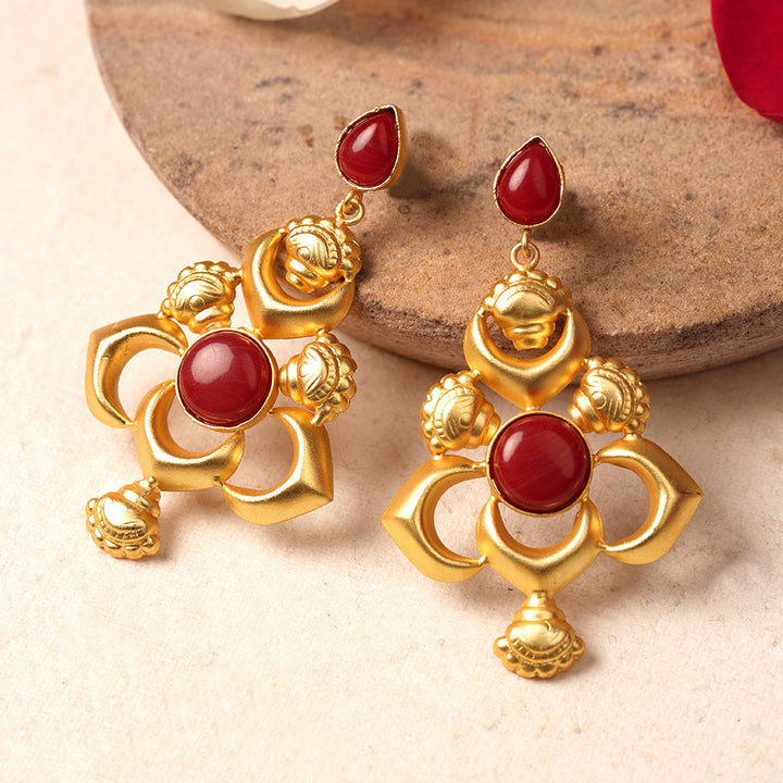 Elevate your elegance with the Nivah Stone Studded Hanging Pearls Dangler Earrings. Expertly crafted, these earrings feature finely set stones paired with delicately hanging pearls, offering a sophisticated blend of sparkle and classic charm. Ideal for both formal occasions and refined everyday wear, they provide a graceful accent that complements any ensemble with subtle luxury and timeless appeal.