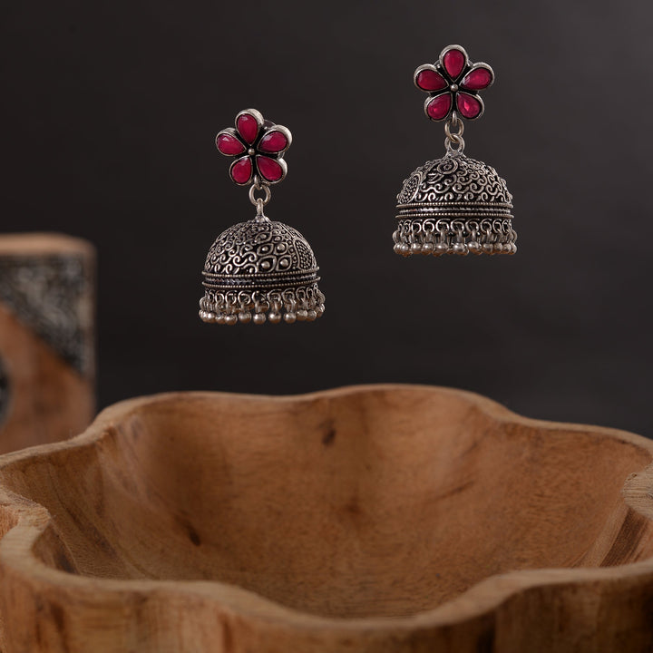 These handcrafted Jhumka earrings feature intricate detailing and a classic design. Perfect for special occasions, they add a touch of elegance and traditional charm to your ensemble.
