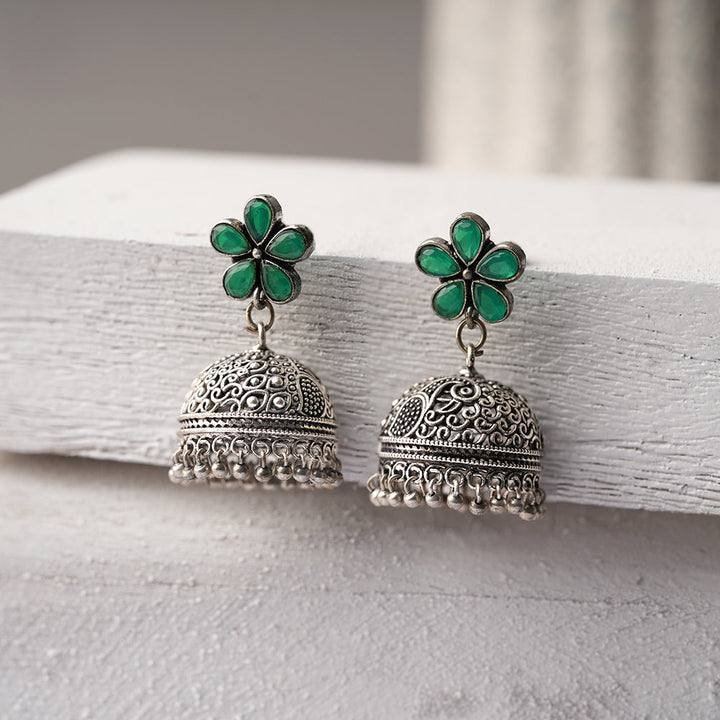 | Style Tip: Intricately designed jhumkas for a touch of traditional elegance. |