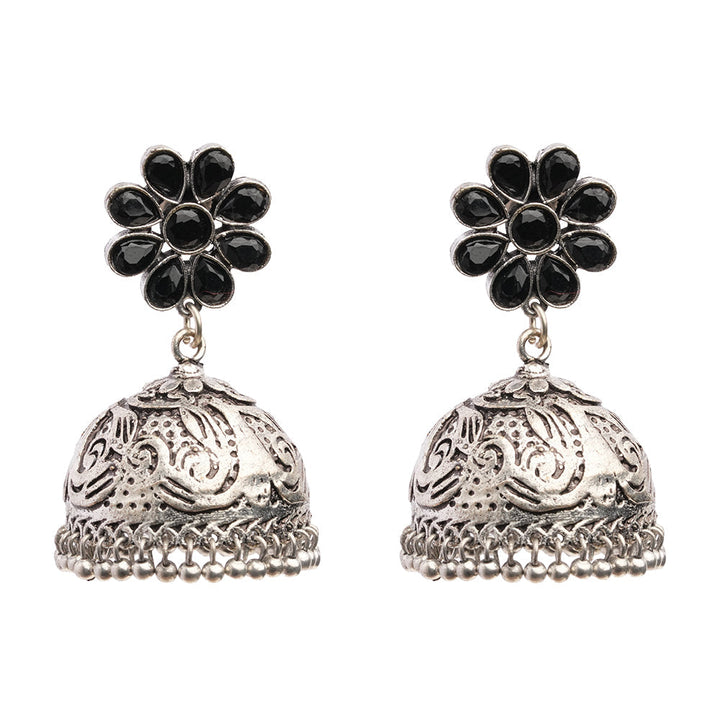 Style Tip: Intricately designed jhumkas for a touch of traditional elegance. |