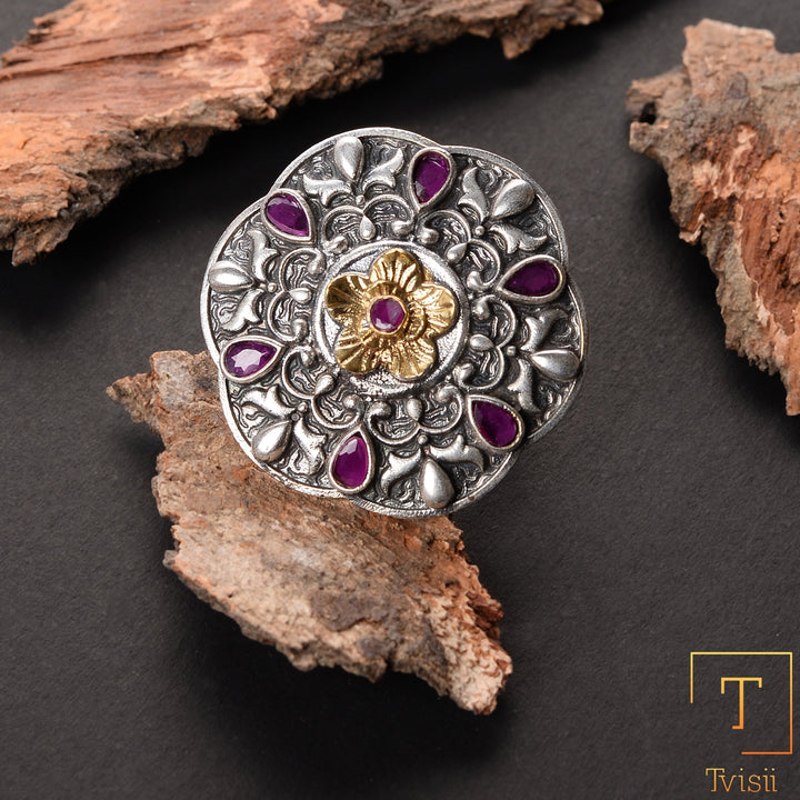 Elegant and stylish, these double tone brass rings combine two finishes for a unique look. The adjustable design ensures a comfortable fit, making them perfect for any outfit or occasion.