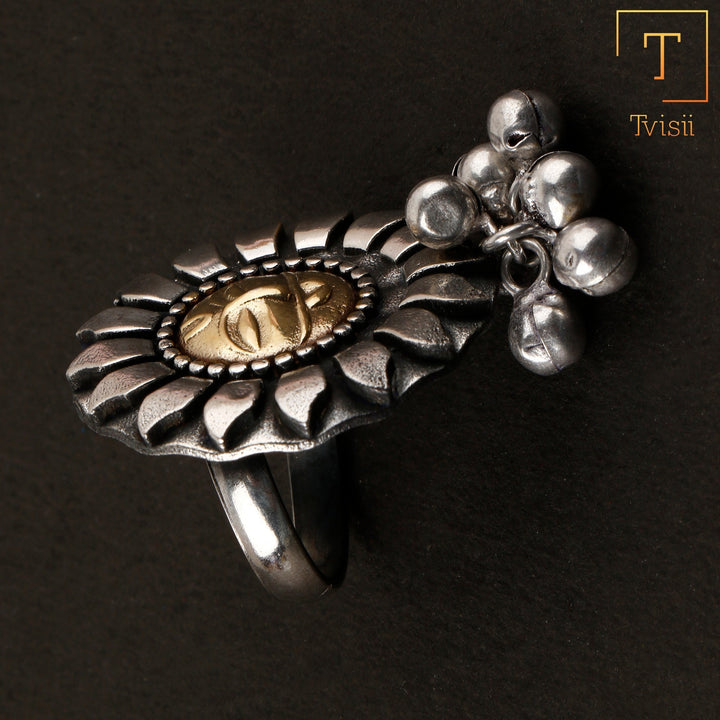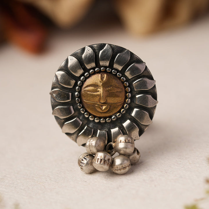 Channel celestial vibes with this Surya adjustable ring, inspired by the sun's radiant beauty. Its unique design makes it a standout accessory. The adjustable band ensures a comfortable fit, adding a touch of celestial elegance to any outfit.