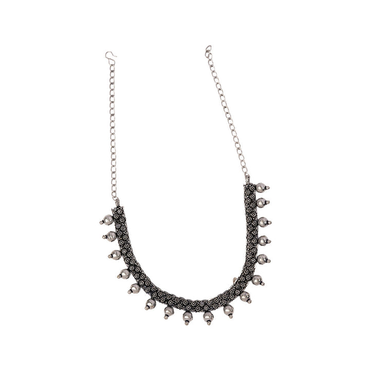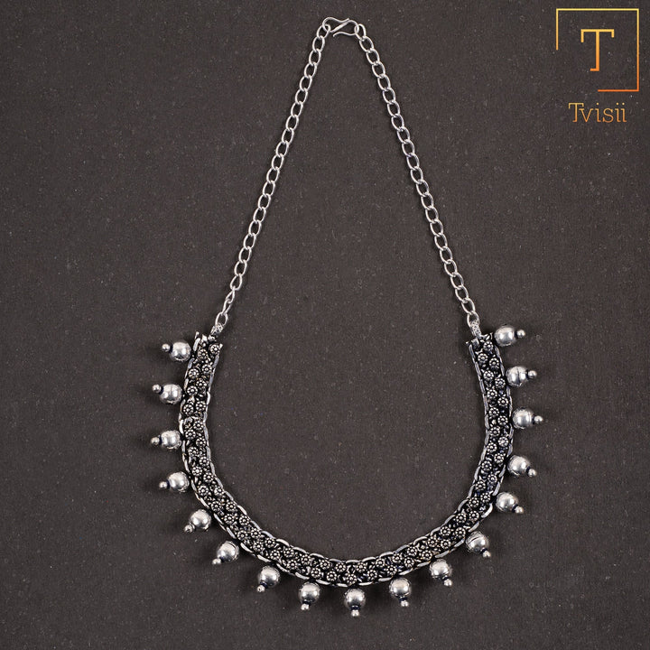 Vintage charm meets modern style in our oxidised brass necklace. Its intricate detailing and antique finish make it a timeless addition to your jewelry collection.