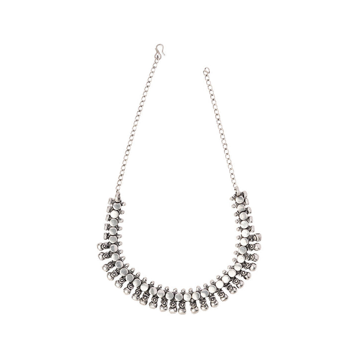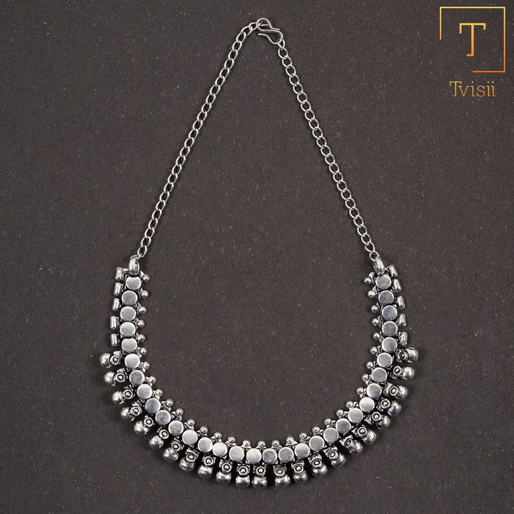 Vintage charm meets modern style in our oxidised brass necklace. Its intricate detailing and antique finish make it a timeless addition to your jewelry collection.