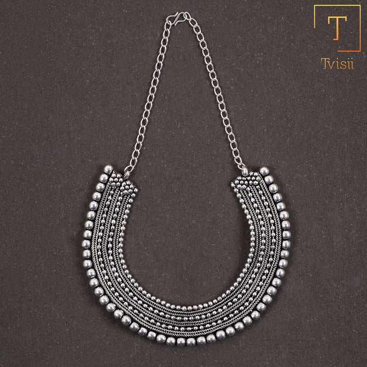 Vintage charm meets modern elegance in our oxidized necklace, featuring intricate designs and rustic appeal.