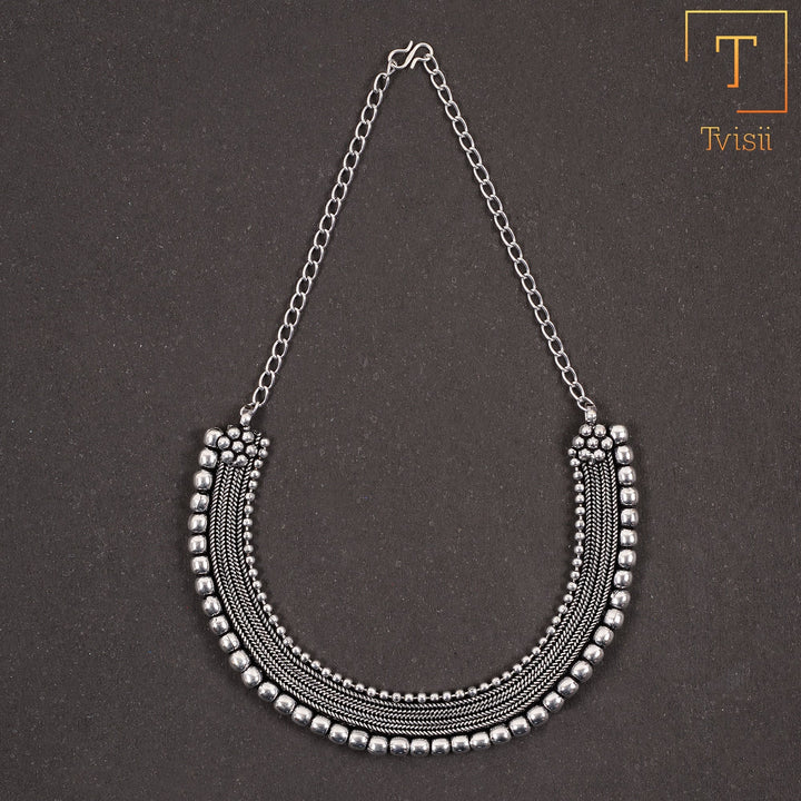 Vintage charm meets modern style in our oxidised brass necklace. Its intricate detailing and antique finish make it a timeless addition to your jewelry collection.