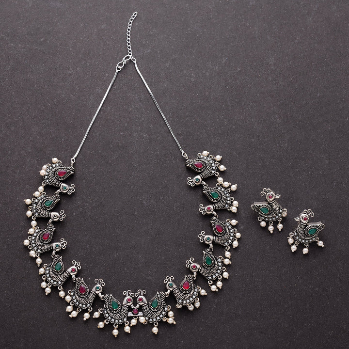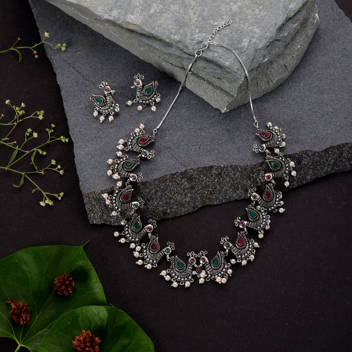 Discover timeless beauty with our oxidised necklace set. Featuring oxidised finish and intricate patterns, it offers elegance and sophistication for every occasion.