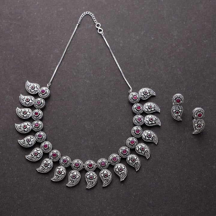 Indulge in timeless elegance with our oxidised necklace set, featuring intricate designs and rustic charm. Perfect for those who appreciate vintage-inspired jewelry, ideal for both casual and formal occasions.