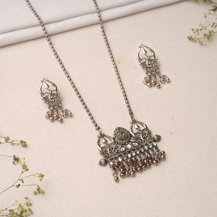 Discover beauty in simplicity with our brass oxidised neckpiece set. Featuring understated elegance and rustic charm, it's perfect for adding a vintage touch to your ensemble.
