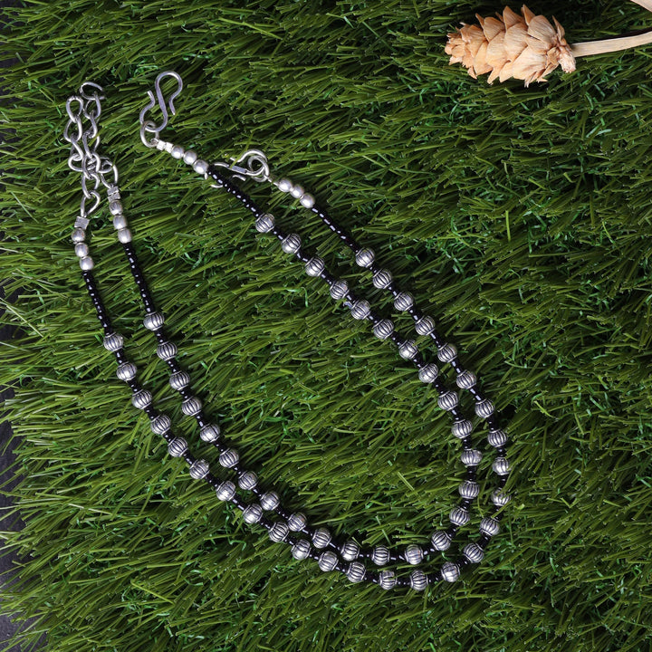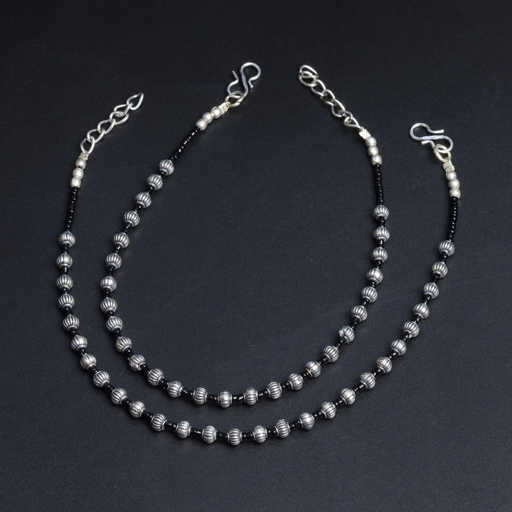 Adorn your ankles with our intricately designed oxidised anklet, featuring a vintage finish that adds a touch of traditional elegance to any outfit.